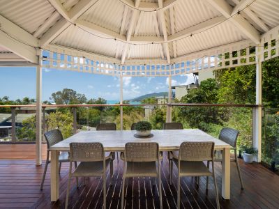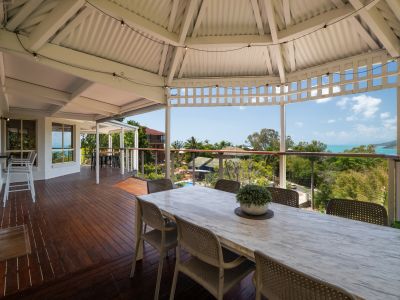 Positioned high above the township, the home captures sweeping, uninterrupted ocean and island views from every level - a vantage point that simply cannot be replicated or built out. Expansive timber decks and covered verandahs frame the outlook, delivering a front-row seat across the Whitsundays from sunrise through to sunset, all within an easy stroll of Airlie Beach's main street, marina and dining precinct.