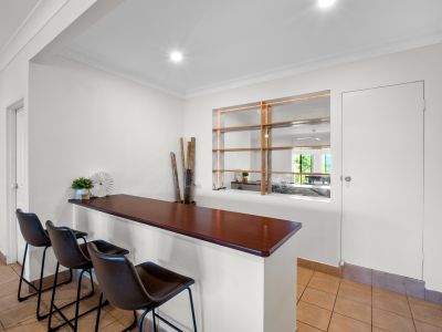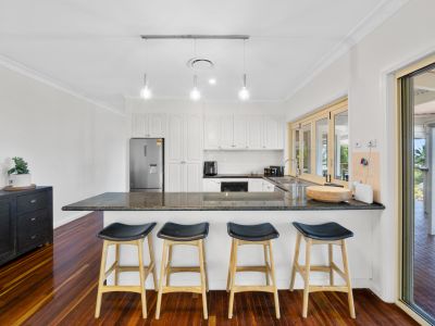 High ceilings, ducted air conditioning and warm timber finishes add character, while expansive living and dining areas flow seamlessly onto the decks. A dedicated recreational bar enhances the entertaining appeal, and there remains space to introduce a pool and further elevate the lifestyle offering.
