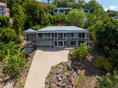 Perched high above the township in one of Airlie Beach's most central and sought-after positions, this commanding double-story residence offers a front-row seat to the Whitsundays' breathtaking beauty. Every level enjoys sweeping ocean and island views, while multiple timber decks and covered verandahs invite you to entertain, unwind, and embrace the coastal lifestyle from sunrise to sunset.