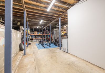 • Downstairs includes a neat, air-conditioned gym or hobby space