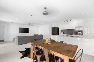 Inside, the home is light-filled and easy to live in, with open-plan living and dining areas that connect seamlessly to the outdoor space. The centrally positioned kitchen is well suited to busy family life and entertaining, with ample bench space, storage and clear sightlines to the living areas.