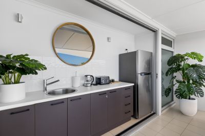 Freshly styled with new furniture and fixtures to take your breath away, you'll love the lavish stone benchtop kitchen and tiled open-plan living area that spills out to the balcony for coffee each morning. Then take the stairs up to a lightly shaded rooftop entertaining space with a kitchenette for dining with friends, or relax and soak up some rays.