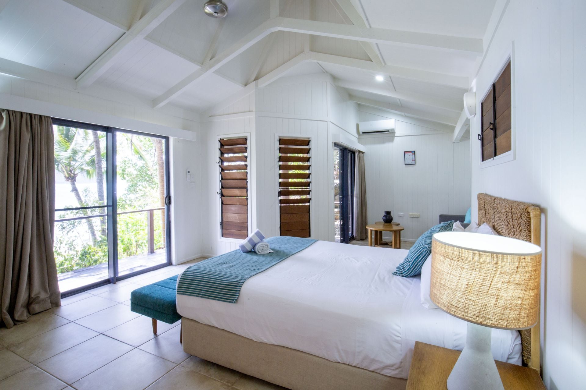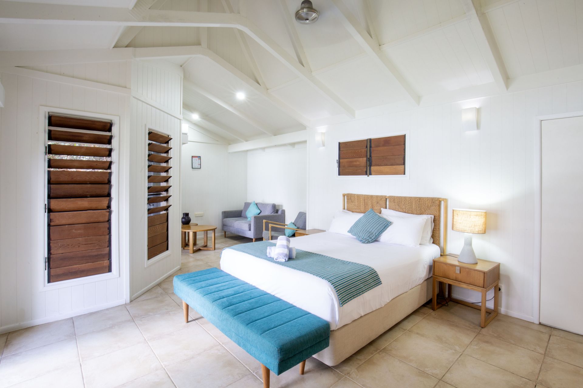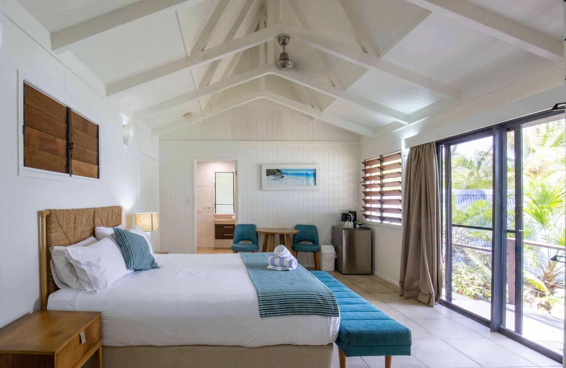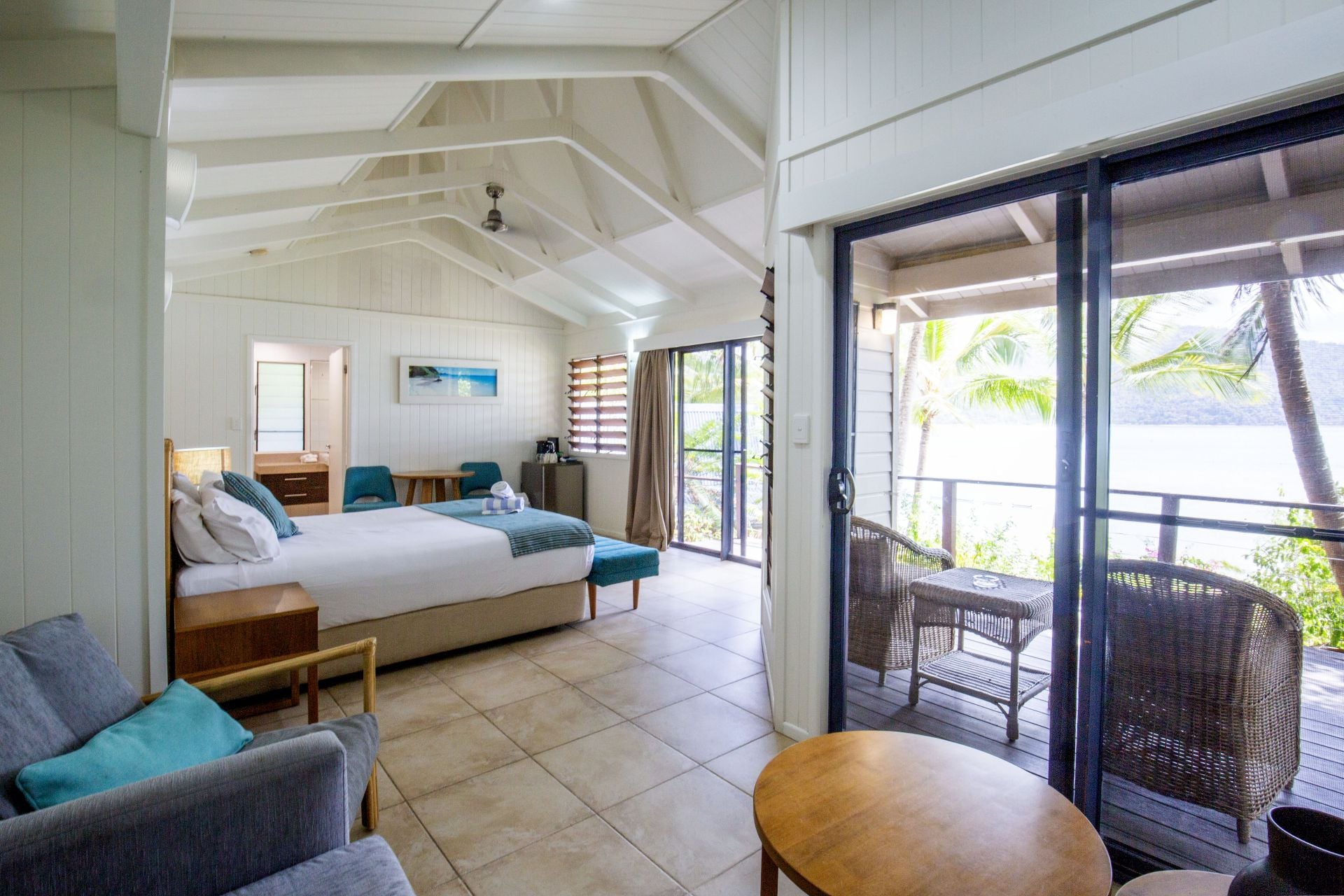 Nestled amid lush tropical gardens and just steps from the sand, this charming bure includes everything you need for effortless island living: a comfortable bed, cozy lounge, minibar fridge, private bathroom, and a shaded veranda overlooking the crystal-clear turquoise waters of the Whitsundays.