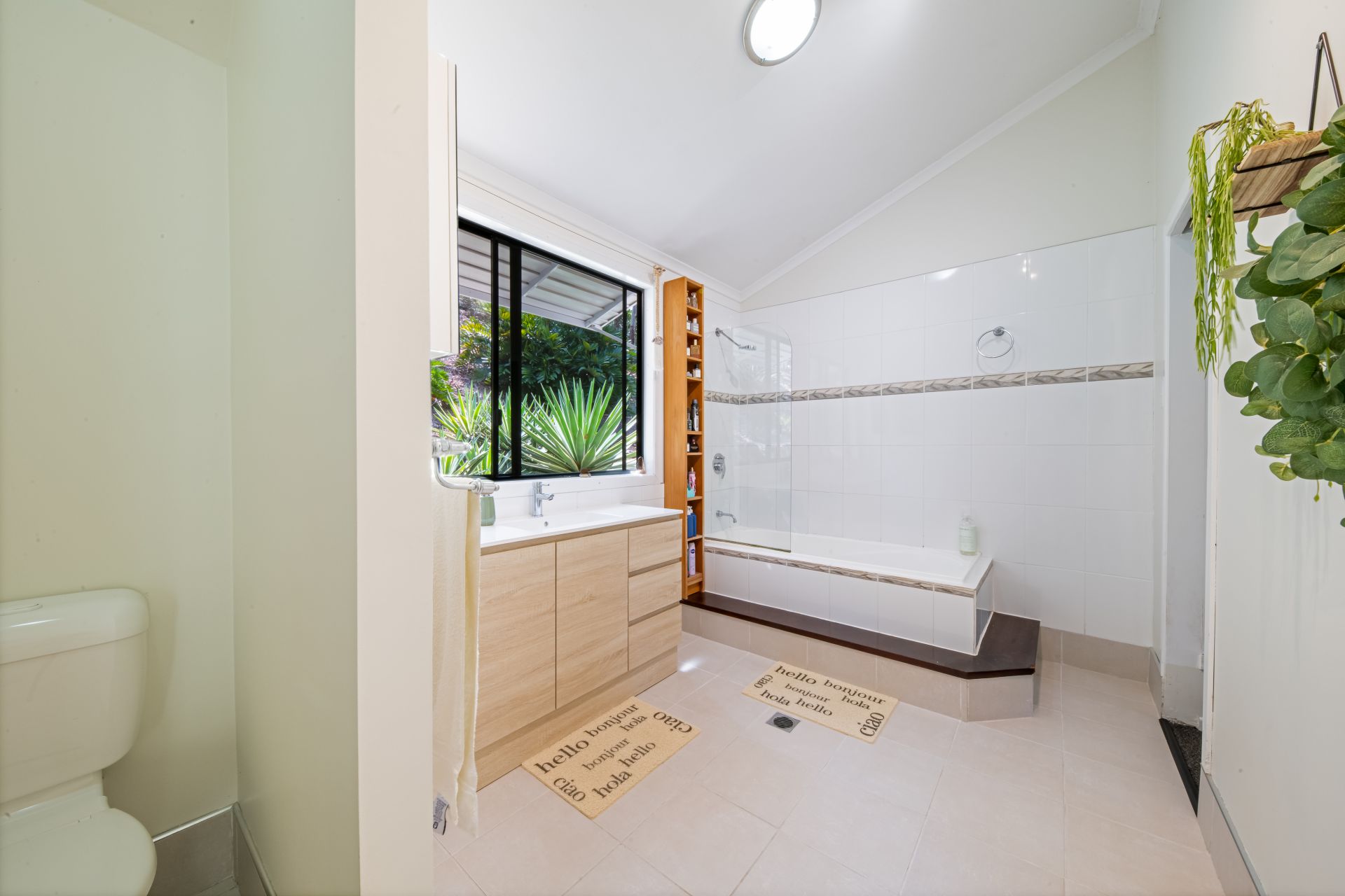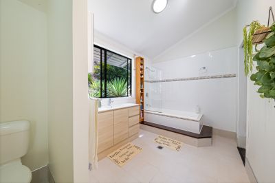 The lower section of the block features a spacious 3-bedroom home with soaring ceilings, air-conditioning, a huge kitchen with spacious corner pantry, and a well-appointed laundry including a second toilet for convenience plus plumbing provisions ready for a second bathroom. The master room enjoys a walk-in wardrobe plus soothing rainforest vista's.